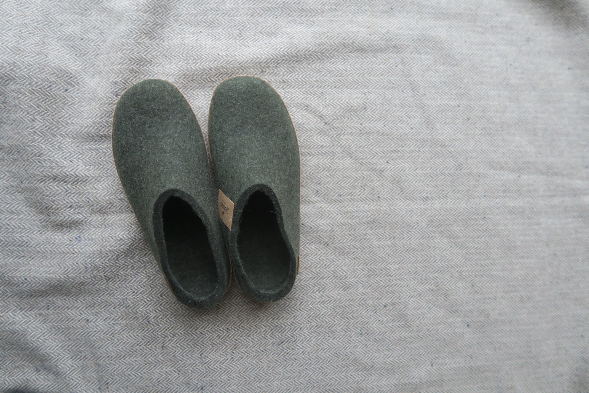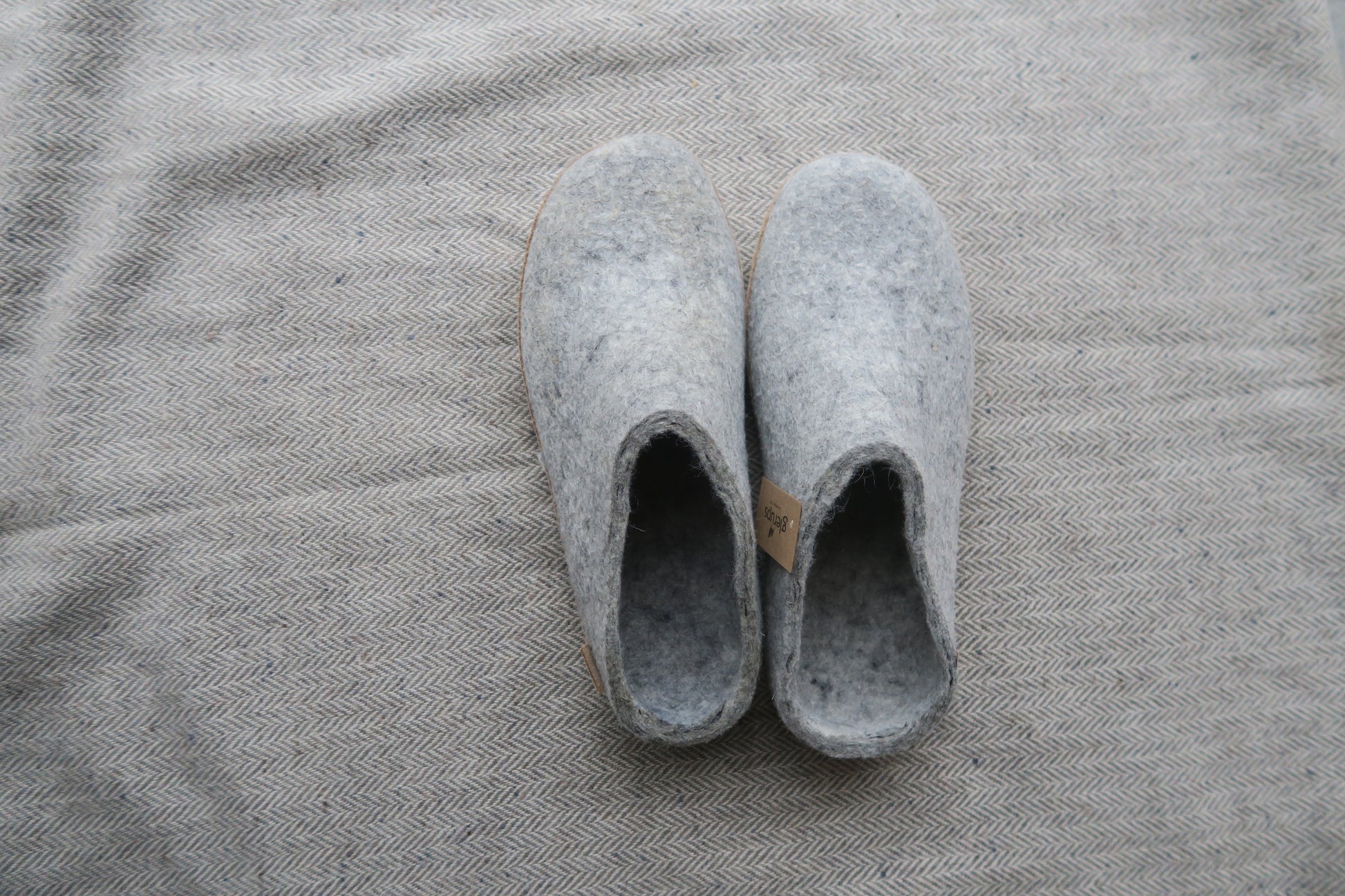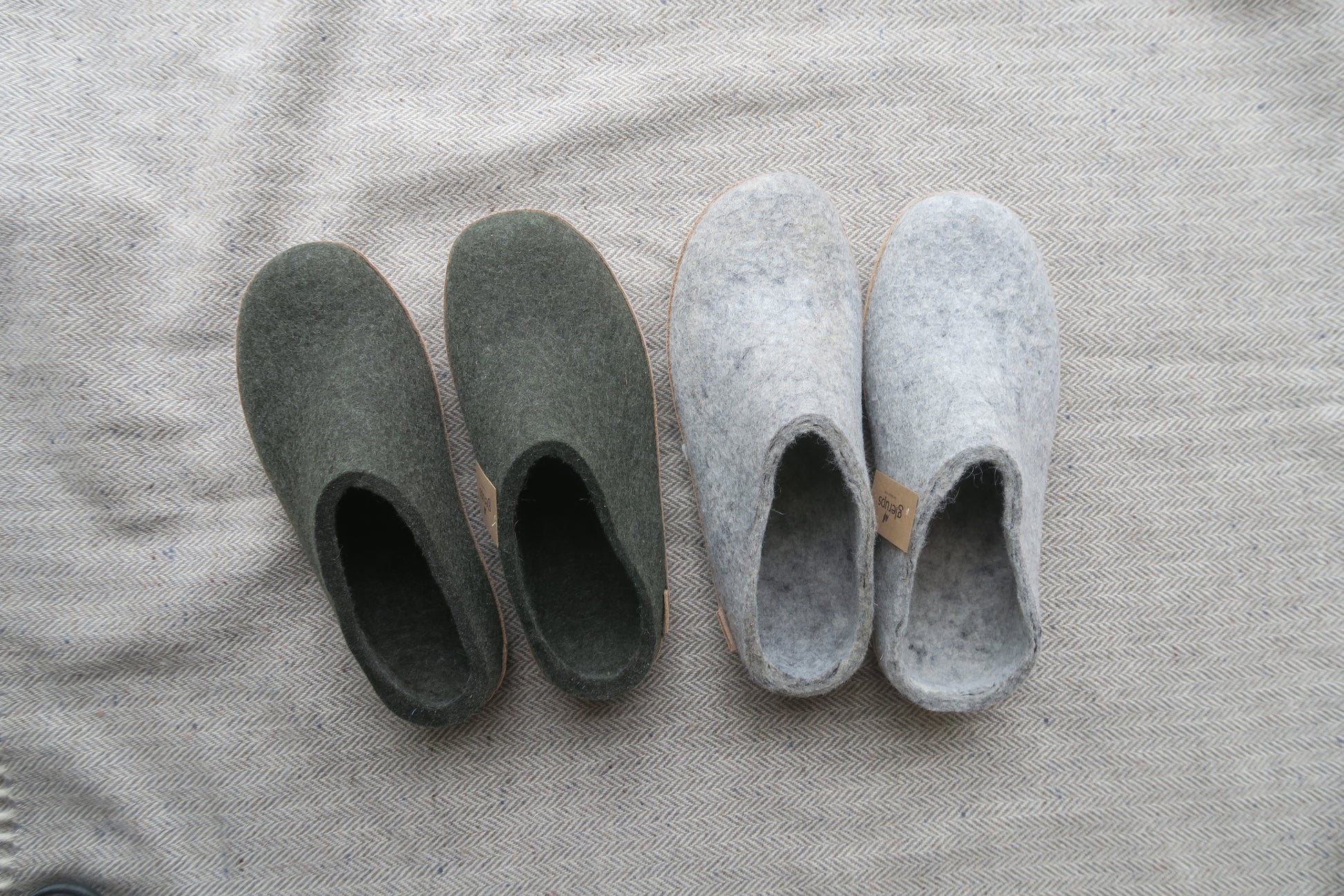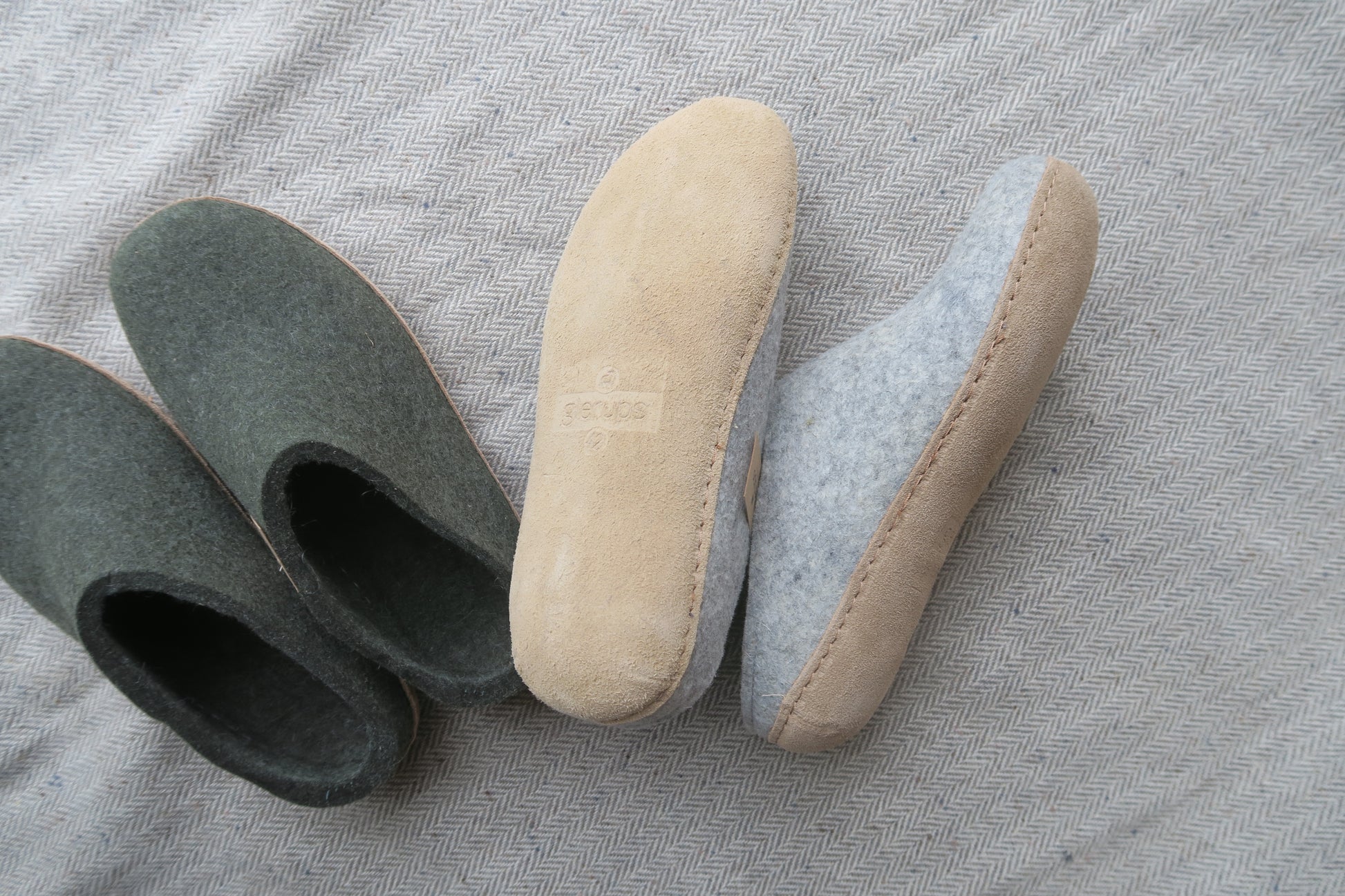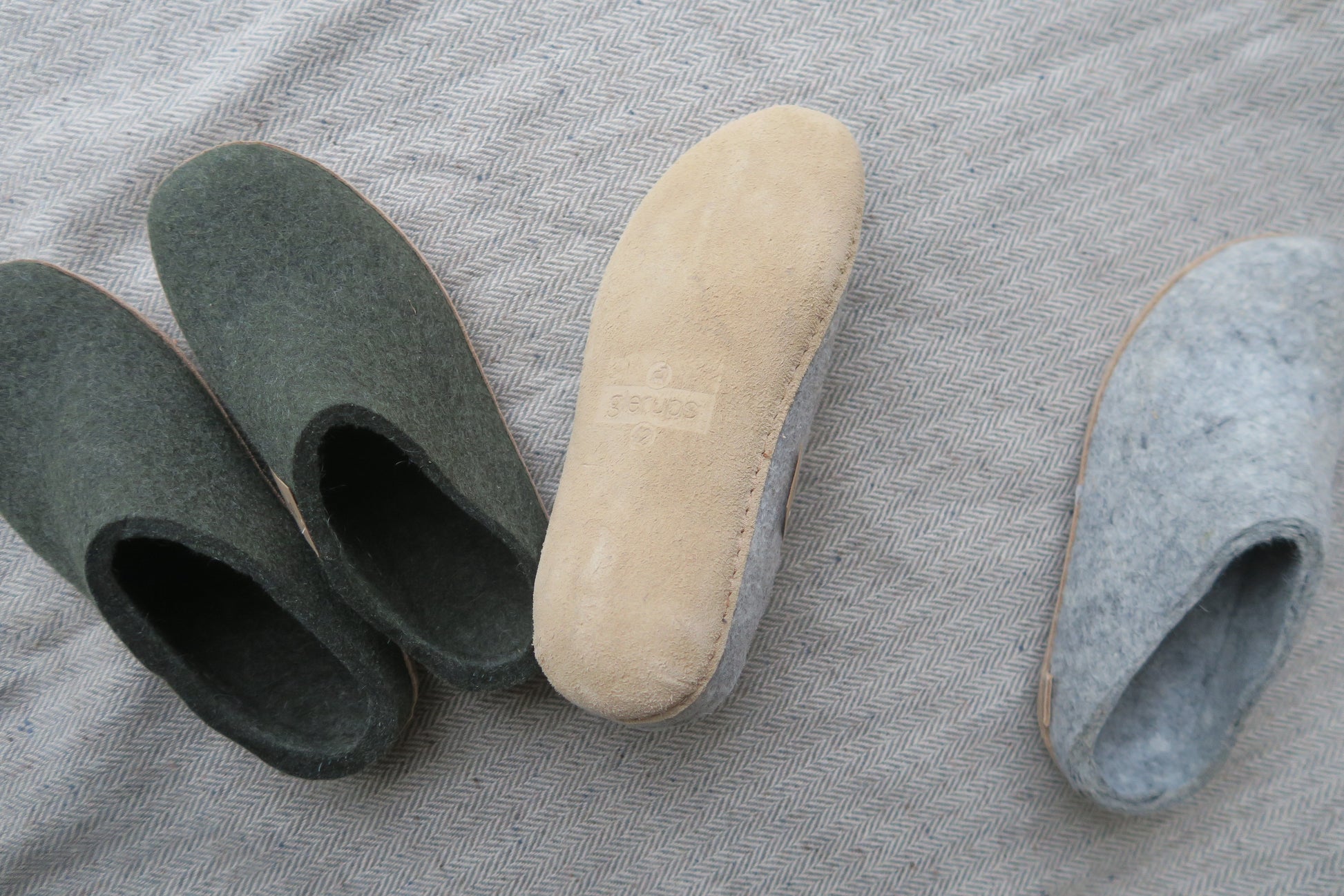一年中快適なウールのルームシューズ、外側の底はスエードになります。