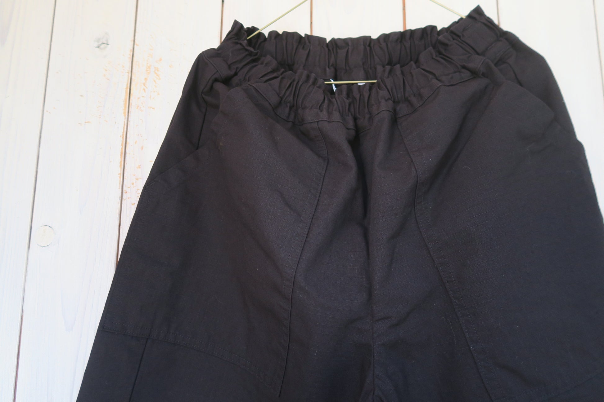 両脇にポケット、ウエストゴム、股下70㎝