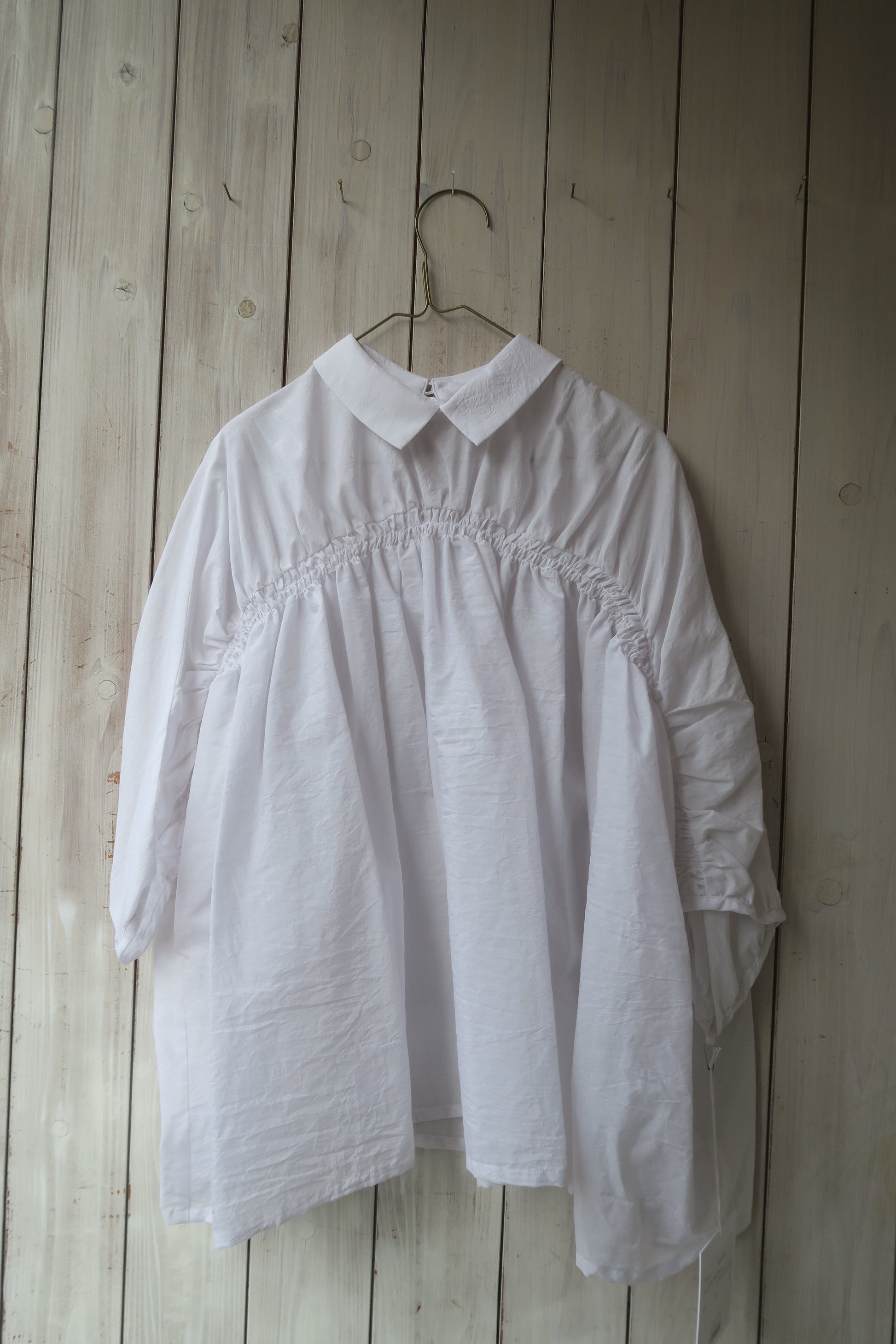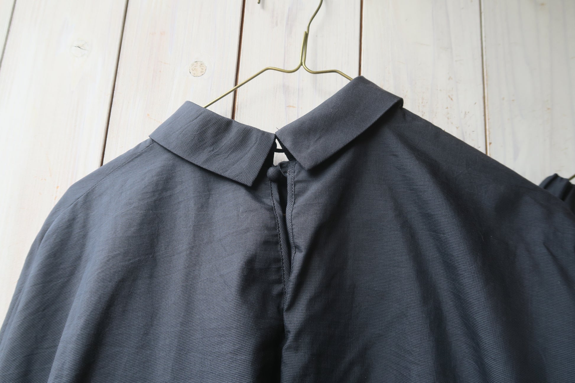 ブラウスのサイズ バスト140㎝ 着丈63㎝-首の後ろにくるみボタンで着脱