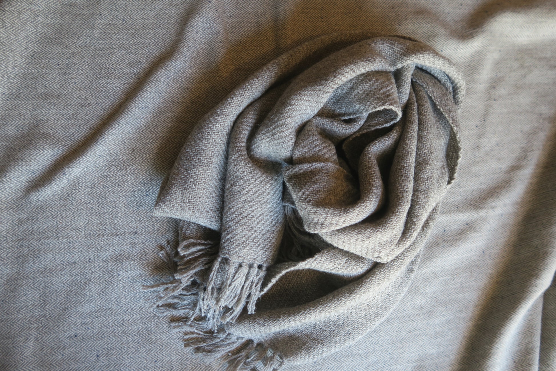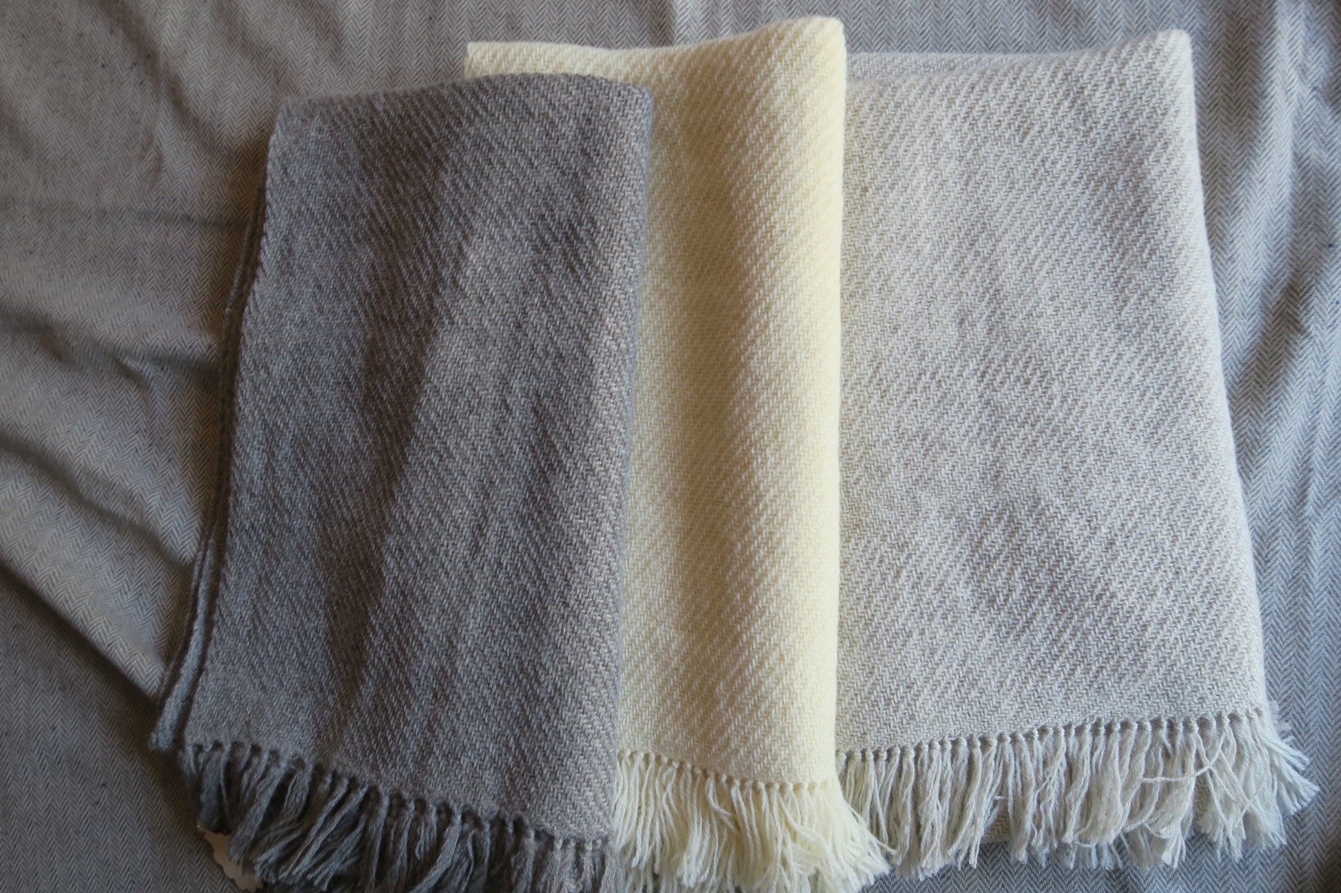 手織りのストール、自然な羊の色、軽さ、風合い